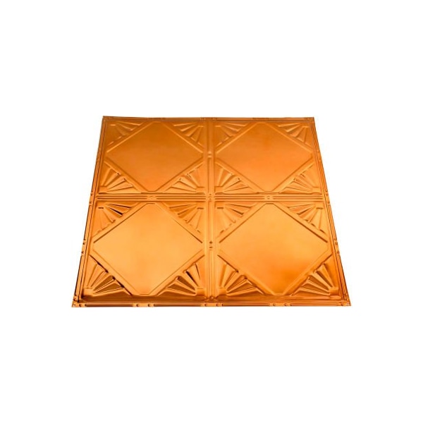 Great lakes tin erie 2' x 2' lay-in tin ceiling tile in copper - y56-08 great lakes tin ceilings provide the classic look of yesteryear with authentic recreations that make a lasting impression in any space. The ceiling tiles are available in both nail-up and lay-in options in numerous styles and finishes. The nail-up tiles are easily applied with nails, screws or glue. Lay-in tiles simply lay into and existing 15/16in suspended ceiling grid. Finish options range from antique or gloss white to bronze burst and copper offerings. Two crown molding sytles are also available and provide a finshed look to your project. Panels can be cut wit tin snips and allow customers to achieve a professional look at an affordable price.