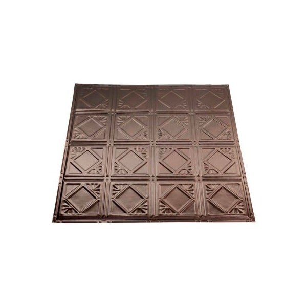 Great lakes tin ludington 2' x 2' lay-in tin ceiling tile in bronze burst - y57-06 great lakes tin ceilings provide the classic look of yesteryear with authentic recreations that make a lasting impression in any space. The ceiling tiles are available in both nail-up and lay-in options in numerous styles and finishes. The nail-up tiles are easily applied with nails, screws or glue. Lay-in tiles simply lay into and existing 15/16in suspended ceiling grid. Finish options range from antique or gloss white to bronze burst and copper offerings. Two crown molding sytles are also available and provide a finshed look to your project. Panels can be cut wit tin snips and allow customers to achieve a professional look at an affordable price.