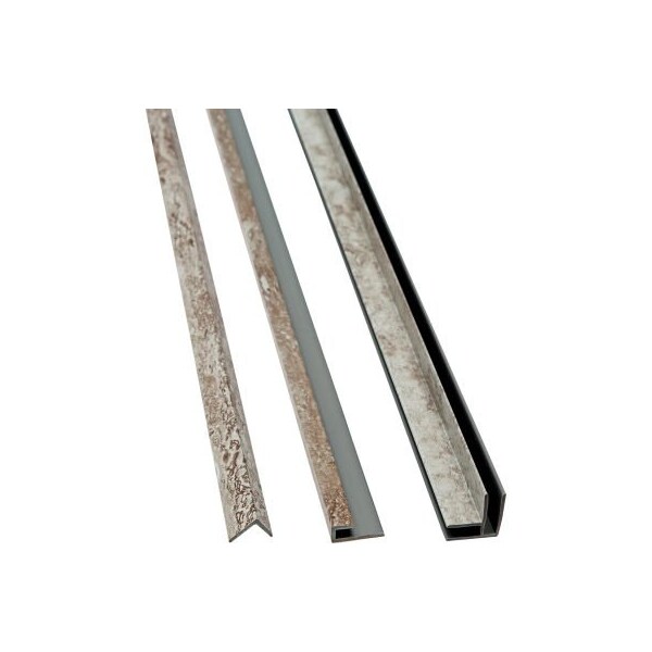 Give your palisade tile project a professional look with the palisade 94-inchtrim kit. This kit is available in the same finishes as the palisade tiles and palisade planks and includes two 94-inch inside corner trims, two 94-inch j-trims and two 94-inch l-trims. these palisade trims simply affix using adhesive, followed by a sealant if being used in an area where water is present. palisade trims can be used in various applications including bathrooms, tubs, showers, laundry rooms and kitchens. features: fire rating - class a approvals/certifications - astm e331-00, astm g21
