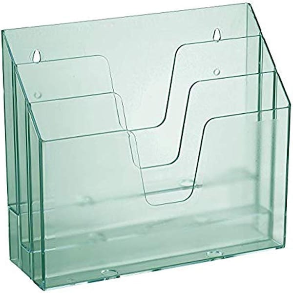 The Acrimet Horizontal Triple File Folder Holder is a sleek, clear solution for organizing documents, folders, magazines, catalogs, and brochures. Its modern, space-saving design can be used standing, lying flat, or mounted for versatile placement. Ideal for offices, schools, clinics, government facilities, banks, and home use. Folders not included.