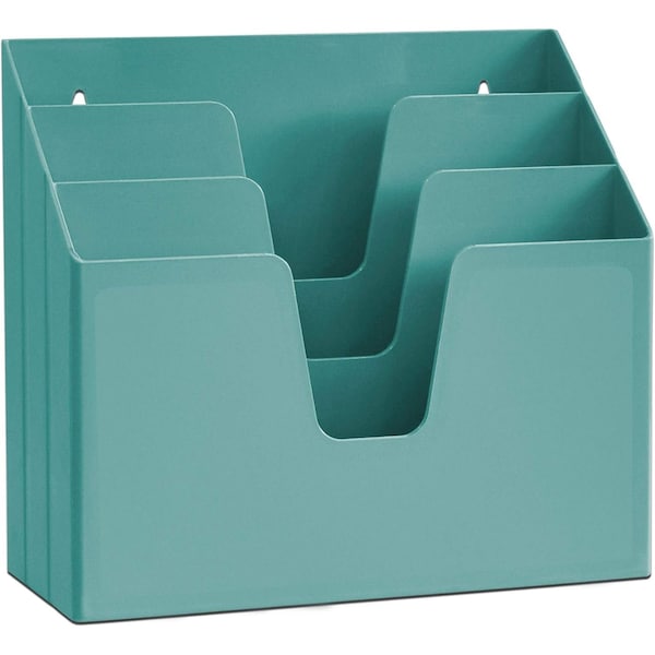 Horizontal Triple File Folder Holder Organizer (Solid Green Color)