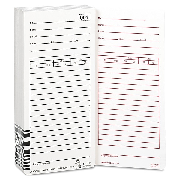 Time Card, Records Bi-Weekly, Semi-Weekly, Weekly, Number of Sides 2, Package Quantity 100