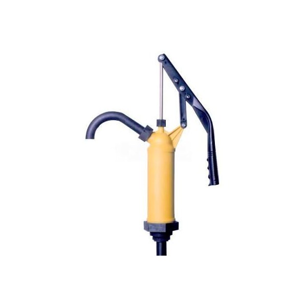 Polypropylene lever action pump is self-priming.. adjustable flow rate dispenses 8, 10 or 12 oz per stroke. . ideal for use in tight places or cabinets.. fits in 15, 30 or 55 gallon drums. . wetted materials: polypropylene, ss & viton.. comes with a 1-1/2" and 2" npt adapter, and a 3 piece suction tube is included.. construction legend: 304 ss (stainless steel)