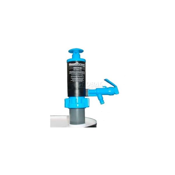 Goatthroat drum pump gt200 with 4" standoff & epdm seal goatthroat pump with single medium epdm seal and 4" standoff kit. Hand operated drum pump, piston action, pump body material polypropylene, wetted materials polypropylene, epdm, max. Head 10 ft., max. Pressure 7 psi, max. Temp. 120 degrees f, max. Viscosity 1400 ssu, inlet size 1/2 in. Outlet size 3/8 in. For use on 5-55 gal. And rieke flex spout containers.