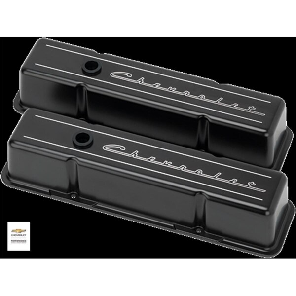 BLK95223 Small Block Chevy Tall Valve Cover with Chevrolet Script, Black