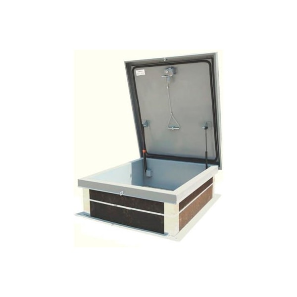 aluminum roof hatch designed to provide convenient, economical access to the roof of a building. Each unit comes with an insulated, self-flashing, 12"high curb and a staple for a padlock on the inside and outside. Each unit is supplied with lift assisting mechanisms and an automatic hold open arm. 1 latch. Mill finish. 32"w x 44"h outside flange dimensions. 24"w x 12"d x 36"h return flange dimensions.