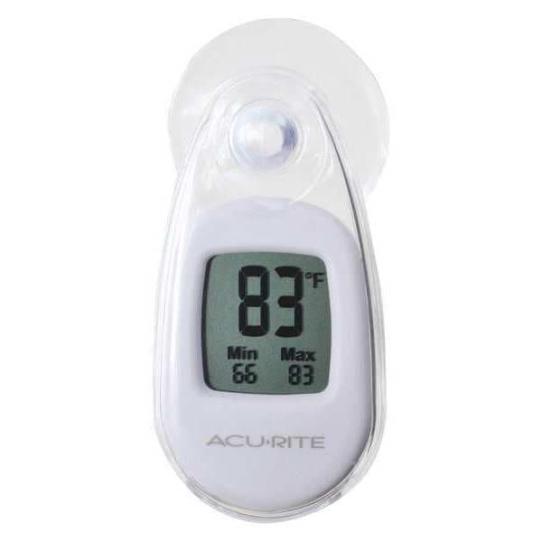 Digital Thermometer, -4 Degrees to 158 Degrees F, Primary Scale Temperature, Power Source Battery, Application Indoor/Outdoor, 1 in H x 1 in W 3-Digit LCD Display - 1/2 in Digit Height, 3.1 in H x 2 in W x 1.5 in D, Window, Temperature Scale Fahrenheit