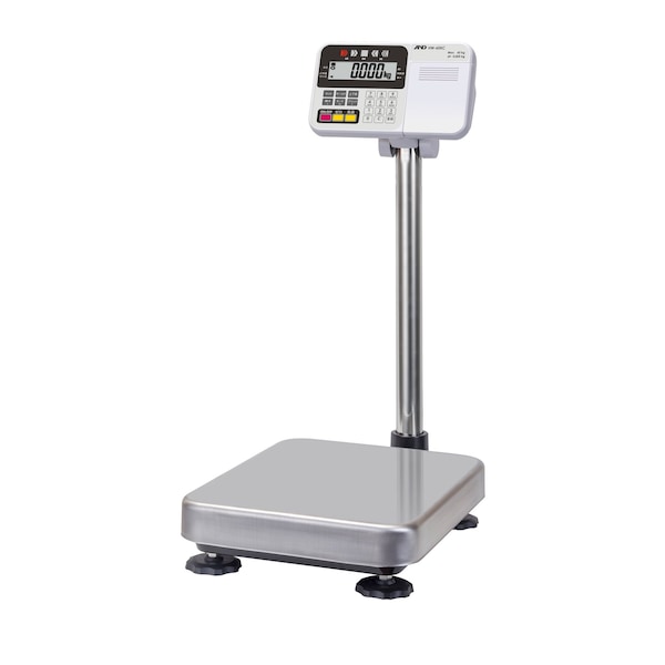 HW-60KC Platform Scale, 150lb x 0.01lb with MEDIUM Platform. Triple-Range Bench Scale with Built-In Traffic Light Comparator and 10-Digit Keypad. IP65 scale base with membrance to protect load cell from water and dust ingress. Weighs in lbs, kg, oz. Weighing modes include parts counting and accumulation function for totaling weigh data.