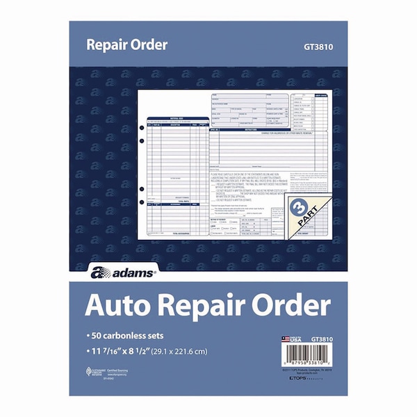 Acceptable for use in all 50 states, Adams Multipart Auto Repair Work Order Forms can be an invaluable tool. Each form features a preprinted layout designed specifically for detailing auto repair jobs, with areas for customer/vehicle information, hazardous materials instructions as well as a job list with parts, labor and additional accessories itemized. Multi-part format lets you provide a receipt and keep copies for administrative tasks. Carbonless paper produces clean, smudge-free results.