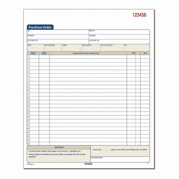 Easily keep hard copy records of each purchase order with the Adams Multipart Purchase Order Pad. A comprehensive, preprinted layout features prompts for all the important details. With entry areas for purchaser, ship-to and administrative information as well as itemized order details, just about anything one might wish to capture can be accommodated. Carbonless, multipart format lets you provide a copy to the purchaser while keeping copies for yourself, and the pad's wraparound cover also allows you to place the front cover between sets as you fill out a form, minimizing the potential for write-through.