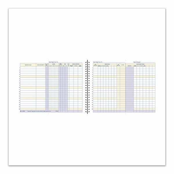 Organize and manage your employees' compensation. Featuring easy-to-read, multi-colored formatting to help reduce eye strain, Adams Weekly Payroll Record Book makes it easy to track hours, pay rates, taxes and more. Twin-wire binding allows the book to lie flat when open, so the rows neatly align across each two-page spread. Moisture-resistant, heavyweight poly cover protects the interior pages from accidents. Ideal for part-time and seasonal employees, depository payment records for withholdings are also accommodated.