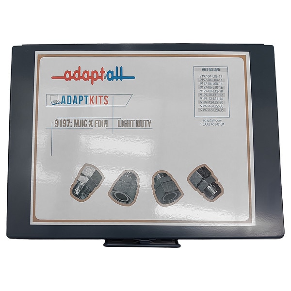 Item Hydraulic Hose Adapter Kit, Case Material Metal, Hose Fitting A Connection Type JIC, Hose Fitting A Gender Male, Hose Fitting A Size - Maximum 1 in, Hose Fitting A Size - Minimum 1/4 in, Hose Fitting B Connection Type Metric DIN, Hose Fitting B Gender Female