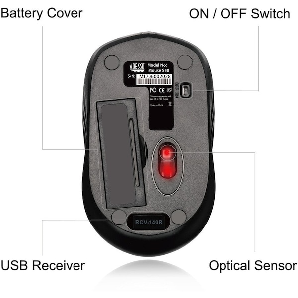 Adesso Red Imouses50 2.4Ghz Wireless Mini Optical Mouse . 1200 Dpi,