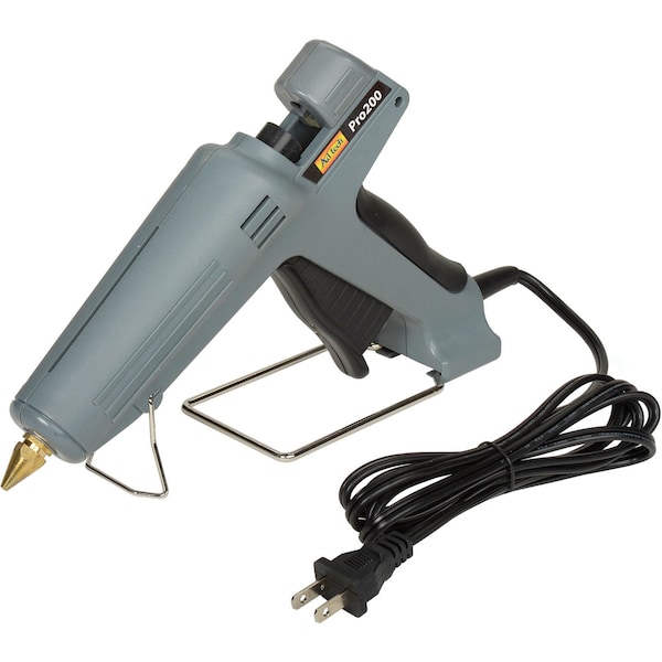 This heavy duty glue gun offers 200 watts of heater power and can deliver up to 3.5 pounds of glue per hour. Durable design, comfortable grip and trigger, and high volume glue output, all add up to an outstanding value. Output per hour: 3.5 lbs. 1.6 kg. Operating temp: 410°F/210°C. 200 watt PTC heating system. Uses 1/2 diameter sticks. 3 minute warm up. Power on light. Comfortable 4 finger trigger. Stable dual stands. Interchangeable nozzles.