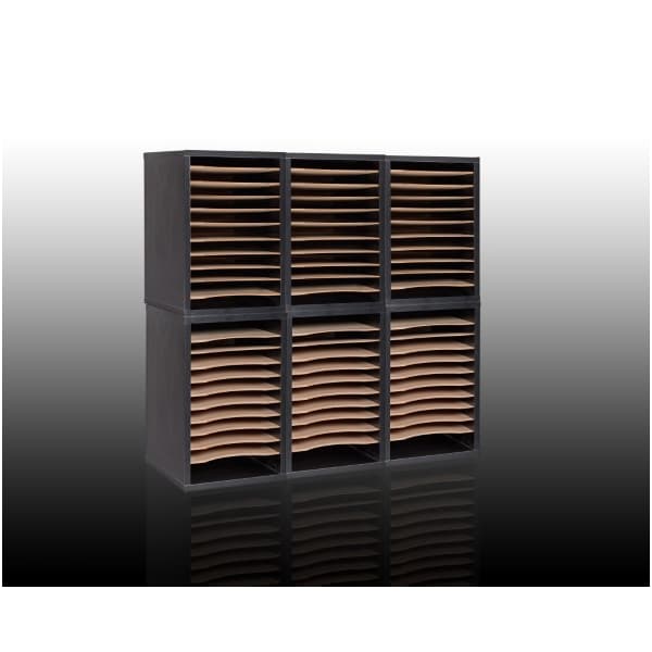 The AdirOffice 11-Compartment Wood Adjustable Vertical Paper Sorter Literature File Organizer keeps items within reach. Each compartment is 10.75 in. W x 11.75 in. D to hold standard-sized papers and folders. Attach identifying tags to the hardboard shelves to enhance utility. This compact paper sorter stores all your papers without taking up excess space. For larger compartments, insert fewer than the supplied 10 shelves. Exterior is crafted using sturdy, medium-density fiberboard construction.