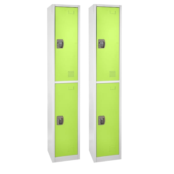 The AdirOffice Steel Double Compartment Tier Key Lock Storage Locker will also be warmly welcomed in school corridors, golf clubs, sports franchises, public safety, first responder and similar organizations where secure storage for participants is essential. AdirOffice storage lockers keep clutter off the floor and secure items within. The storage locker includes 2-shelved compartments and 2-hooks to store items. This is a dual tier compartment storage locker with vents for air flow. Assembly required with provided hardware. Each door has 2-keys and option for user-provided combo- or padlock-enhanced security. The AdirOffice locker also contains a slot for names or numbers for personal or public use extends locker utility. Set of 2.