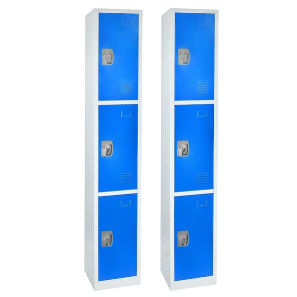 The AdirOffice Steel Triple Compartment Tier Key Lock Storage Locker will also be warmly welcomed in school corridors, golf clubs, sports franchises, public safety, first responder and similar organizations where secure storage for participants is essential. AdirOffice storage lockers keep clutter off the floor and secure items within. The storage locker includes 3-shelved compartments and 3-hooks to store items. This is a triple tier compartment storage locker with vents for air flow. Assembly required with provided hardware. Each door has 2-keys and option for user-provided combo- or padlock-enhanced security. The AdirOffice locker also contains a slot for names or numbers for personal or public use extends locker utility. Set of 2.
