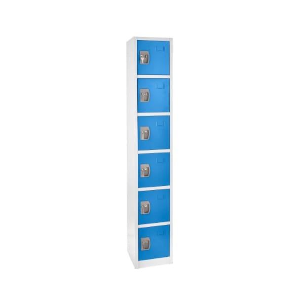 The AdirOffice 72” Hx12” W Steel 6-Compartment Tier Key Lock Storage Locker will be welcomed in organizations where secure storage for participants is essential. AdirOffice storage lockers keep items secure and reduce clutter. This locker is vented for air flow and includes 6-shelved compartments and 6 hooks for storage. Assembly required with provided hardware. Each door has 2-keys and option for user-provided combination lock- or padlock-enhanced security. Use slots for identification.