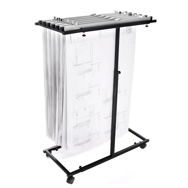 Mobile Steel Adjustable Blueprint Rack Vertical Plan Center in Black. Holds up to 240 lbs and 1200 documents