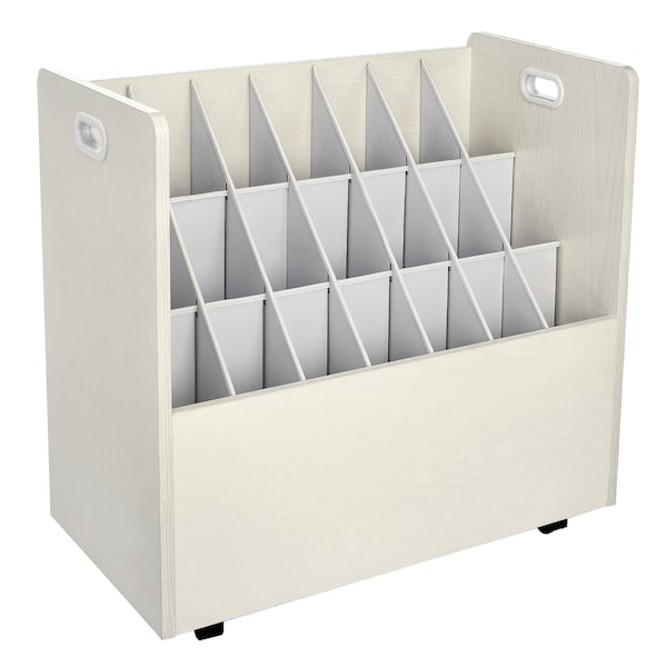 21-Compartment Mobile Rolling Wood Blueprint Roll File Storage Organizer in White. Holds 21 rolled files in 3.75 in slots