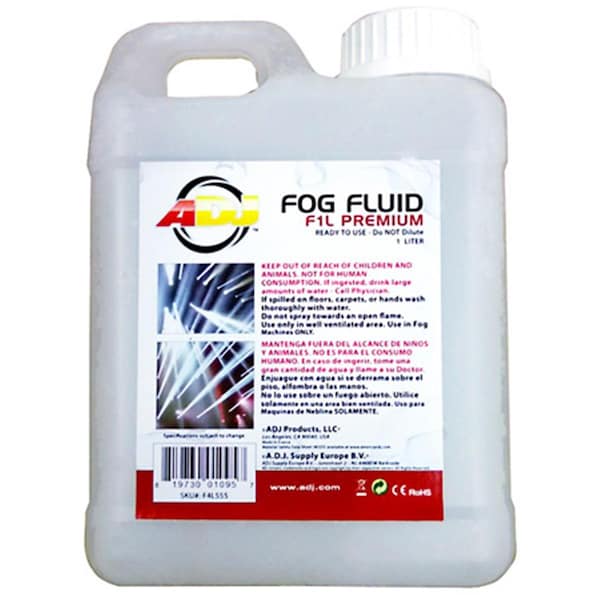Fog effects are great for improving the quality of special effects lighting at parties clubs theaters Halloween events or any light show production.If you're looking to create the proper fog machine experience you need American DJ's F1L Premium Fog Fluid.This safe water based solution will make your light shows all the more exciting by creating a dynamic environment and obfuscating effect.Fog Fluid allows fog machines to improve the visibility of light in particular that of lasers thoroughly improving the atmosphere at your event.Get the dance floor foggy with the quality formula of ADJ F1L Premium Fog Fluid.Features -Made from the highest quality materials -Meets the highest quality standards -Designed for Durability with Comfort Specifications - Capacity: 1 Litre
