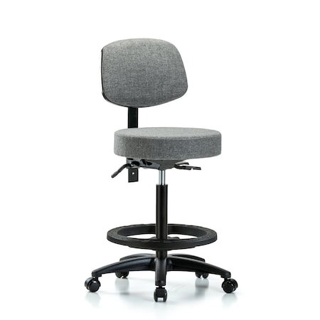 Rutledge Fabric Stool with Back - High Bench Height with Black Foot Ring and Casters in Gray Fabric
