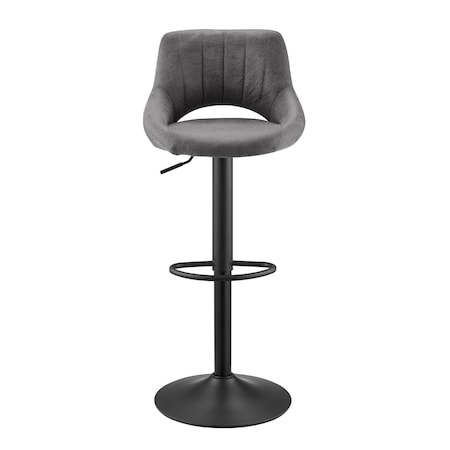 Set of Two 32" Gray And Black Faux Leather And Steel Swivel Low Back Adjustable Height Bar Chairs