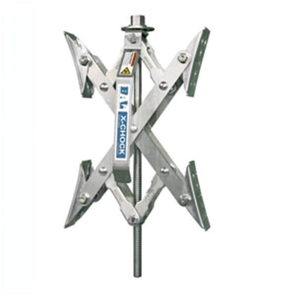Provides added stabilization and prevents tire shift by applying opposing force to tandem tire applications. As opposed to other chocks, the X-Chock works with the tires natural movement instead of against them. Fits even the tightest of applications retracting down to 1-3/8 in. and extends to 10 in. X-Chock has a rust inhibitive coating, lightweight, easy to store. and a plated ratchet wrench with comfort bumper is included. Lockable for added security with pad lock.