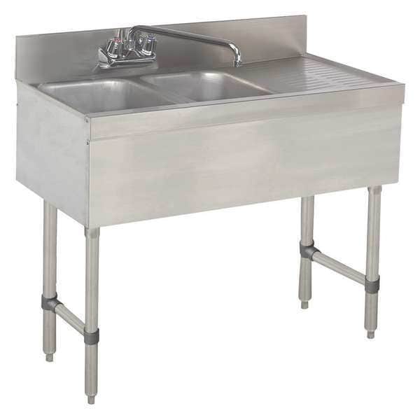 20 ga. 300 Stainless Steel (Sink Bowl, Drainboard), 22 ga. 300 Stainless Steel (Front Apron, Backsplash), 20 ga. 430 Stainless Steel (Sides), 18 ga. Galvanized Steel (Legs)
