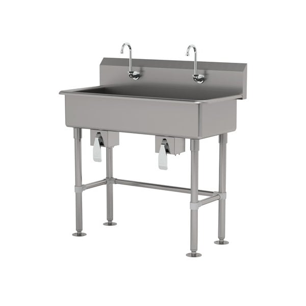 2 Station NSF 14 Ga. 304 SS Floor Mounted Sink - Knee Operated