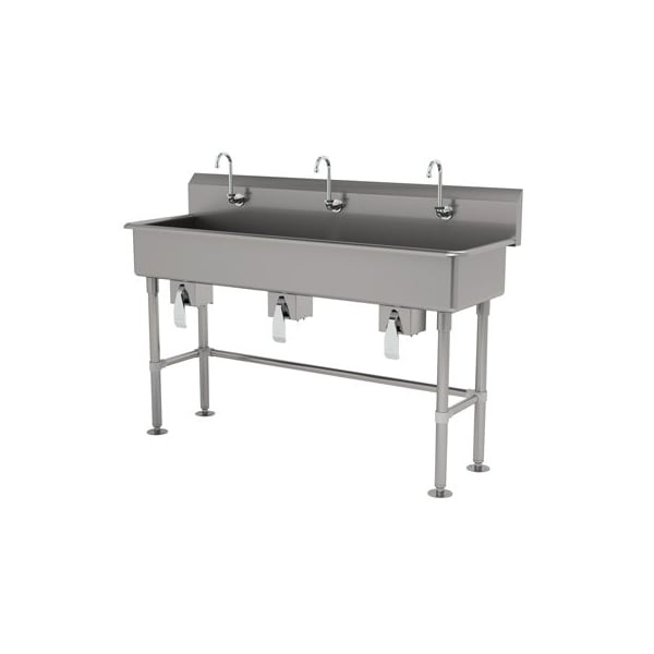3 Station NSF 14 Ga. 304 SS Floor Mounted Sink - Knee Operated
