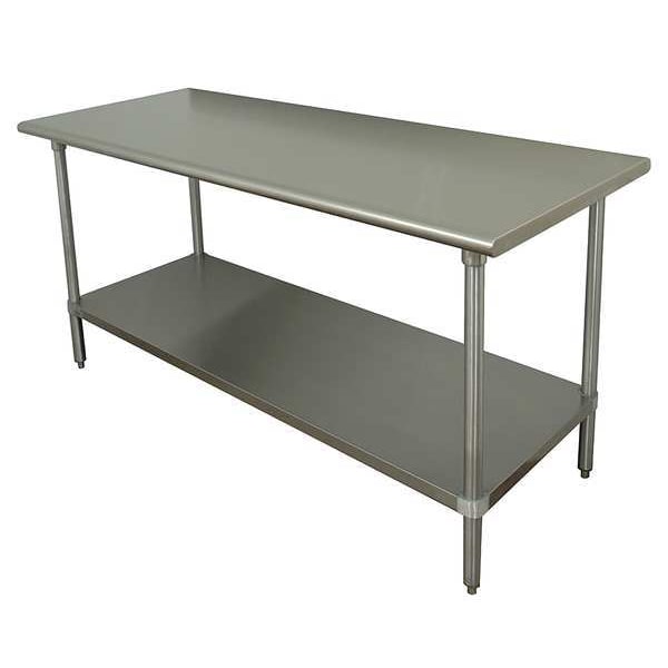 Work Table, Height Adjustability Fixed Height, Number of Shelves 1, Assembly Unassembled, Color Silver, Edge Shape Square, Features Leg to Shelf Clamp, Side Edges, Undershelf, Frame Material Stainless Steel, Frame Material Finish Satin Finish, Height Adjustment Increments Not Applicable, Included Components Back Stop, Lower Shelf, Includes 1 in Adjustable Metal Bullet Feet, Top Has 1-5/8 in Sanitary Rolled Rim Edges On Front and Rear, Adjustable Stainless Under Shelf
