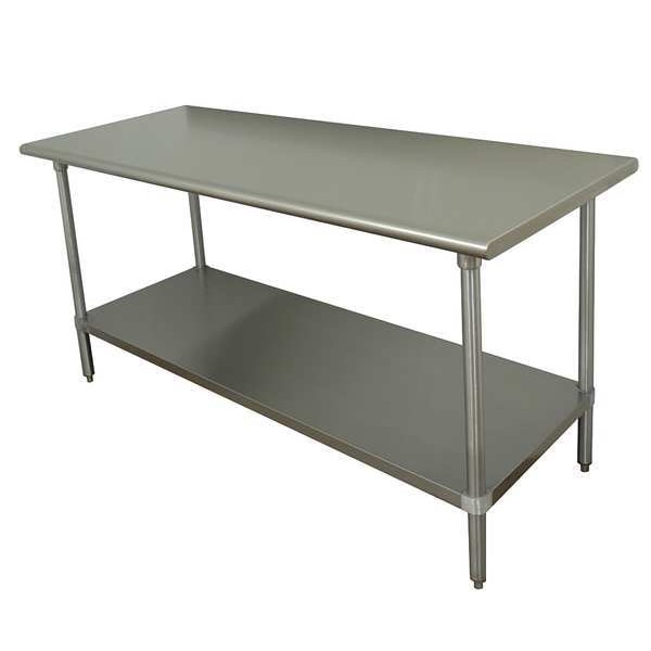 Work Table, Height Adjustability Fixed Height, Number of Shelves 1, Assembly Unassembled, Color Silver, Edge Shape Square, Features Leg to Shelf Clamp, Side Edges, Undershelf, Frame Material Stainless Steel, Frame Material Finish Satin Finish, Height Adjustment Increments Not Applicable, Included Components Back Stop, Side Stops, Lower Shelf, Includes 1 in Adjustable Metal Bullet Feet, Top Has 1-5/8 in Sanitary Rolled Rim Edges On Front and Rear, Adjustable Stainless Under Shelf