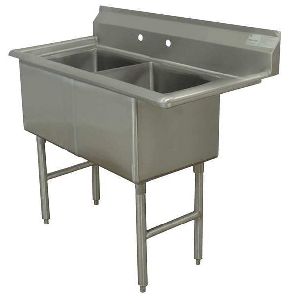Scullery Sink, Stainless Steel, 16 Gauge, Number of Stations 1, 2 Bowl, Back Splash 8-1/2 In., Mounting Type Floor, Number of Holes 2, Stainless Color/Finish, ADA Compliant No, Standards NSF, Includes Basket Drain, Stainless Steel Cross-Braced Legs