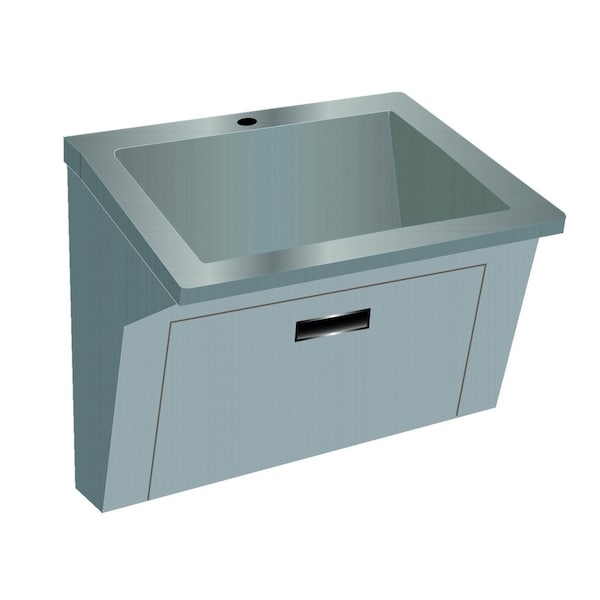 Hand Sink, wall mounted, scrub sink design, 30 in. left to right, 1 scrub station, prepared for 1 single hole deck mount faucet not included, concealed drain with removable front cover, stainless steel, ADA Compliant