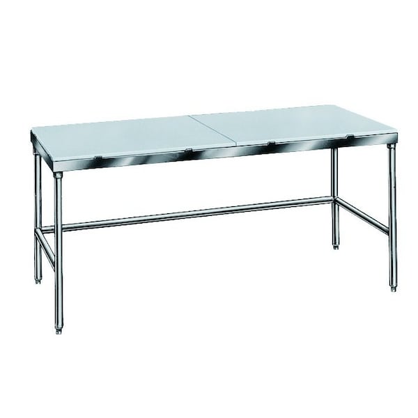 Poly-Top Work Table, 96 in.W x 24 in.D, 5/8 in. thick Poly-Vance top, stainless steel legs with side & rear cross rails, adjustable stainless steel bullet feet, NSF
