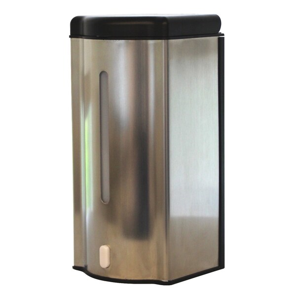 Soap Dispenser, electronic touchless, wall mounted, 20 oz. liquid soap reservoir, hands-free dispensing, with mounting bracket, stainless steel, requires 4 AA batteries not included. NOTE: for proper operation, requires an unobstructed area below sensor of at least 12 in. Unit may be converted to AC power with a 120V to 6v adapter-not offered by Advance Tabco