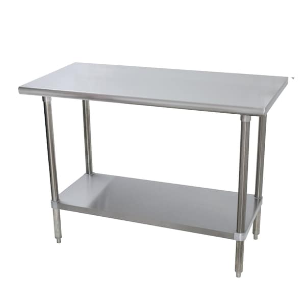Special Value Work Table, 72 in.W x 36 in.D, 16 gauge 430 stainless steel top, 18 gauge adjustable stainless steel undershelf, stainless steel legs & adjustable bullet feet, NSF