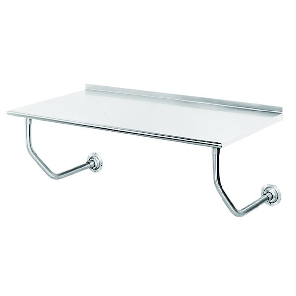 Table, wall-mount, 84 in.W x 24 in.D, 14 gauge 304 stainless steel top with 1-1/2 in.H rear up-turn, front rolled edge, stainless steel wall brackets with flanges, NSF