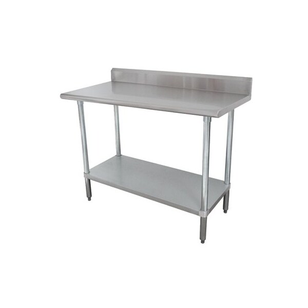 Fixed Height Work Table, Workbench/Table Surface Material Stainless Steel, Depth 30 in, Width 48 in, 500 lb Load Capacity, Height 35 1/2 in, Color Silver, Workbench/Table Leg Type Straight, Bullnose Front / Square Edge Sides Edge Type, Top Thickness 1 5/8 in, Workbench/Table Frame Material Stainless Steel, Includes 5 in Back Splash, 1 in Adjustable Metal Bullet Feet, Top Has 1 5/8 in Sanitary Rolled Rim Edges On Front, Adjustable Galvanized Under Shelf, Workbench/Table Assembly Unassembled