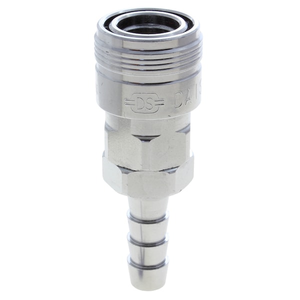 Coupler, Chrome, Manual, Industrial, 3/8" Body Size, 1/4" Hose Barb