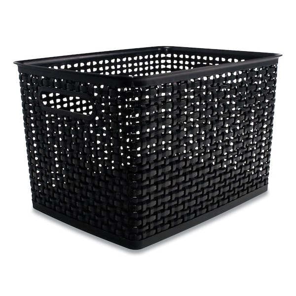 Plastic Weave Bin, Large, 13.5in x 10.5in x 8.75in, Black (Discontinued)