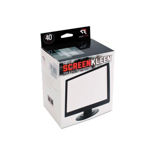 Read right kleen & dry screen cleaning pads, rr1305, lint-free, anti-static, 40/box kleen and dry screen cleaning pads offer a highly efficient, two-part method for cleaning and controlling static on terminal and display screens. One packet contains a premoistened pad with an exclusive antistatic cleaner solution that controls dangerous static charges while removing vision-inhibiting contaminants from the screen surface. The other packet contains a dry absorbent, lint-free cloth for wiping the screen dry and clear. Pads leave screen optically clear and lint-free. Pads are not for use on nylon mesh or polarized antiglare filters. features: pre-moistened lint-free anti-static this product arrives to most customers in 2-3 business days.