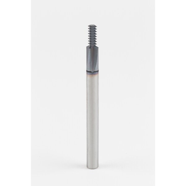 Solid Carbide Thread Mill, 1/4"-48 UN, Straight, 4 Flutes 0.190" Cutter Dia, 0.400" LOC, 3.0" LOA, 0.250" Shank Dia • Premium Ultrafine solid carbide material • Straight flute design typically used for general purpose and harder materials. H6 shank diameter tolerance.