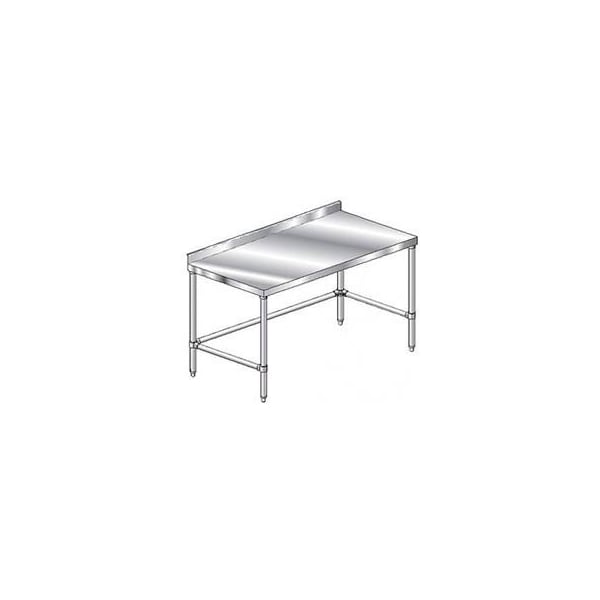 Aero manufacturing 3tssx-30144 16 gauge workbench 304 stainless steel - 2-3/4" backsplash 144 x 30 this stainless steel workbench with 2-3/4" backsplash, stainless steel legs and crossbracing features a 16ga 304 type stainless steel top measuring 144"w x 30"d. Crossbracing is 1-1/4" o.d. 16 gauge stainless steel. Tubular legs are 1-5/8" o.d 16 gauge stainless steel, complete with 1" adjustable impact resistant, metal feet. Stainless steel benches are sound deadened to resist vibration with 1-7/8" hemmed safety edges. Fully welded gussets for extra rigidity. Nsf listed.