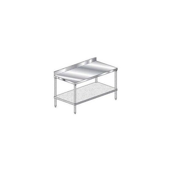Aero manufacturing 4tgb-3696 16 ga workbench stainless steel 4" backsplash & galv undershelf 96 x 36 this stainless steel workbench with 4" backsplash features a 16ga 430 type stainless steel top measuring 96"w x 36"d. Includes an 18 gauge galvanized steel lower shelf. Tubular legs are 1-5/8" o.d. 16 gauge galvanized steel, complete with 1" adjustable impact resistant, plastic feet. Stainless steel benches are sound deadened to resist vibration with 1-7/8" hemmed safety edges. Lower shelf is fully adjustable. Fully welded gussets for extra rigidity. Nsf listed.