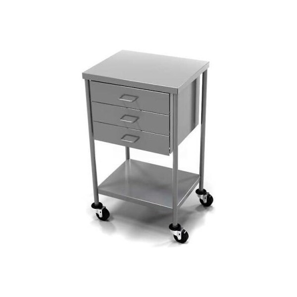 AERO Stainless Steel Anesthesia Utility Table with 3 Drawers & Flat Top Shelf
