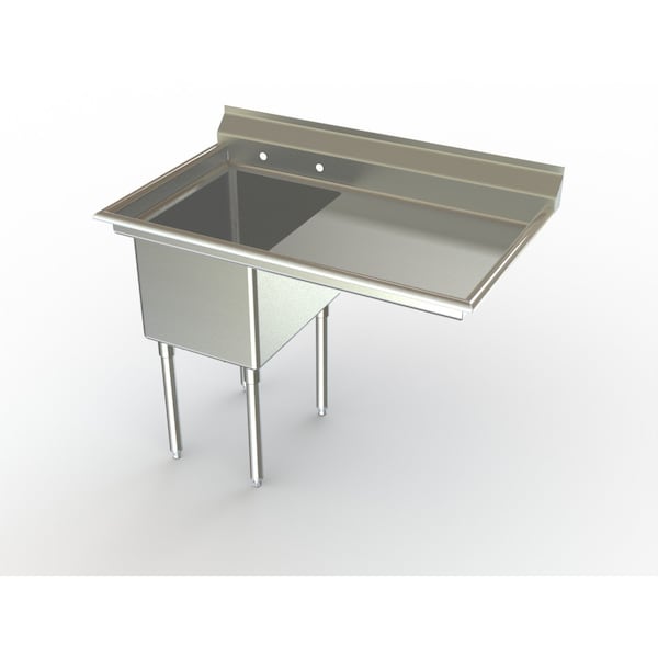 Deluxe Sink, 1-bowl, with 18" RH drainboard, 21" W x 16" L-R bowl dimensions, 14" D fabricated bowl, 7" H splash, s/s gussets, legs & adjustable white metal feet, 16 gauge 300 series s/s, "Aero Safety Edge", fully welded gussets, shipped KD, NSF