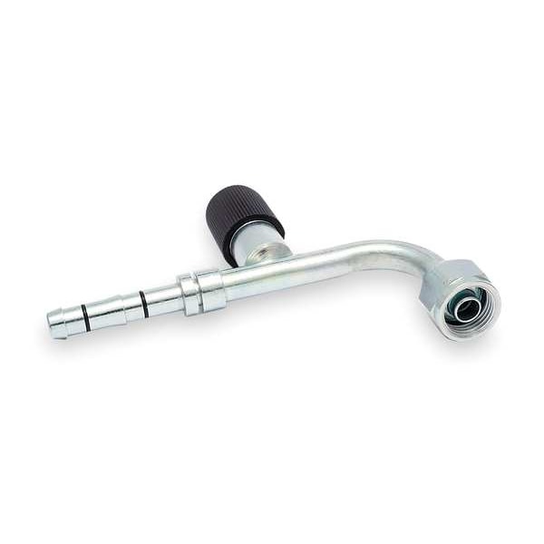 Female High Side Hose Fitting, Refrigerant Type 134A, R12, R22, R502, MP39, MP66 and R404A, Female Thread (In.) 5/8-18, Dash Size 6, Min. Burst Pressure (PSI) 2000, Max. Working Pressure (PSI) 500, Hose Outside Dia. (In.) 0.58, Hose Inside Dia. (In.) 0.31, Material Steel, For Use With Male O-Ring, Standards SAE J2064