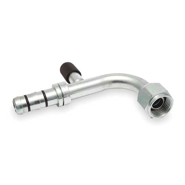 Female Low Side Hose Fitting, Refrigerant Type 134A, R12, R22, R502, MP39, MP66 and R404A, Female Thread 7/8-14 In, Dash Size 12, Min Burst Pressure 2000 PSI, Max Working Pressure 500 PSI, Hose Outside Dia 0.98 In, Hose Inside Dia 0.63 In, Material Steel, For Use With Female O-Ring and Low Side Port, Standards SAE J2064